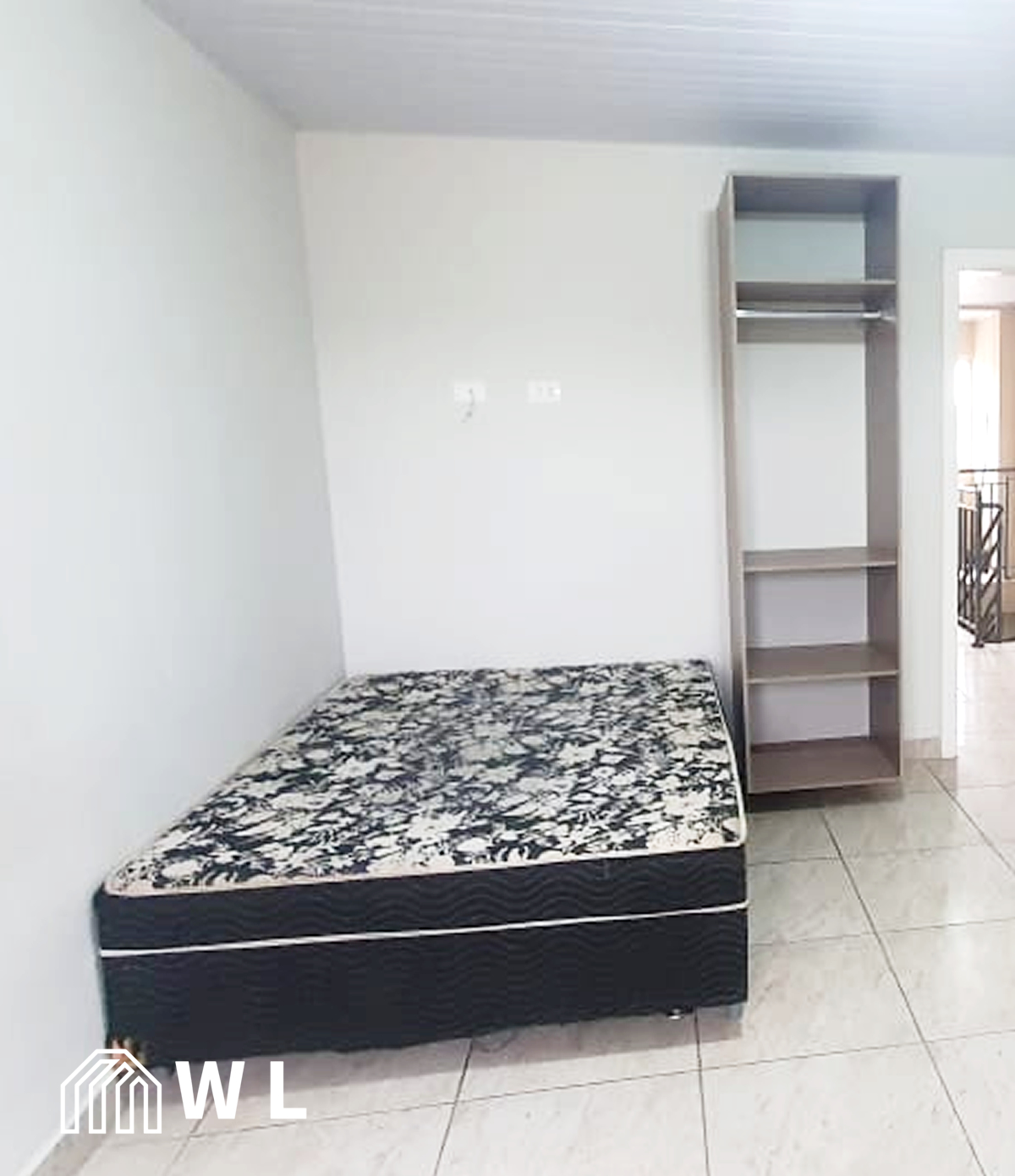 - Mobiliada com cama de solteiro, guarda-roupas, mesa para estudo/trabalho