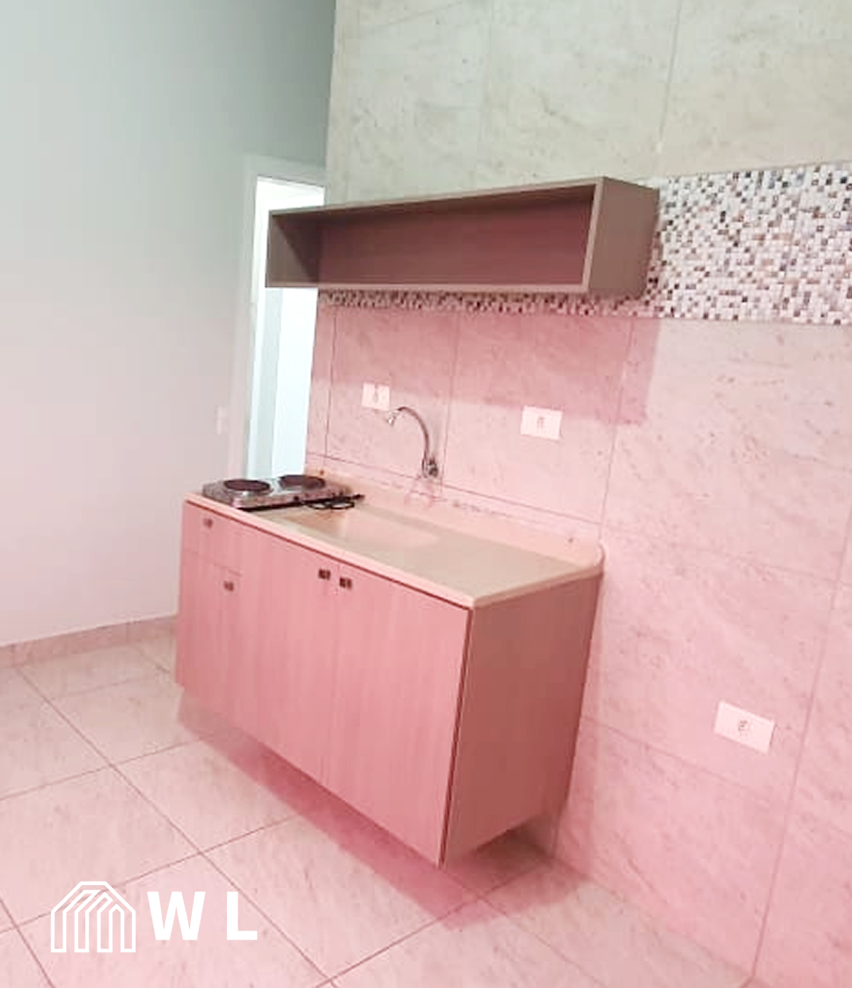 - Cozinha com pia e preparação para instalação de eletrodomésticos